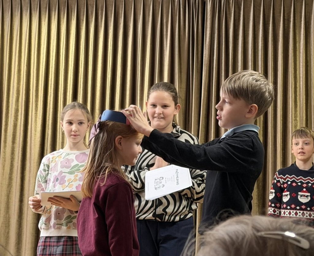 Vasario 5 d. 1a klasė šventė Šimtadienį. Jiems šventinę pamoką dovanojo 4a klasė. Atlikdami įvairias užduotis, mokiniai įrodė, jog yra verti Pirmoko vardo. Tai patvirtino išduotas pažymėjimas ir karūna ! Dėkojame ketvirtokams ir jų mokytojai Zinai!