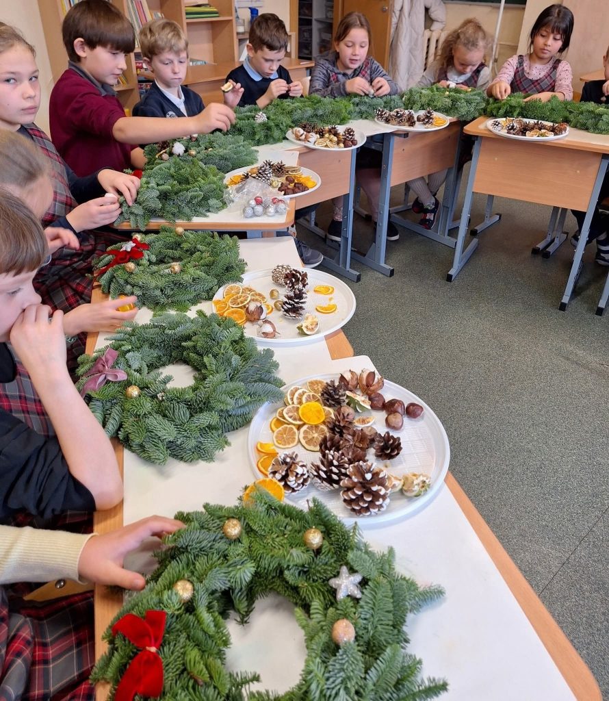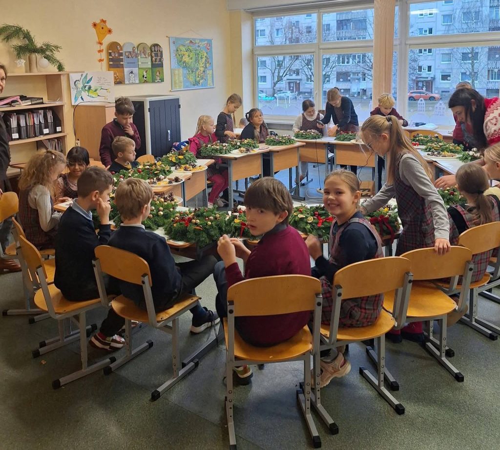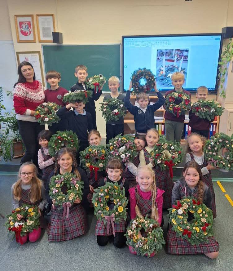Gruodžio 5 d. 3b klasėje vyko Advento vainikų dekoravimo dirbtuvėlės. Klasėje svečiavosi Luko mama, profesionali floristė, kuri vaikams papasakojo apie Advento vainiko kilmę, reikšmę, pynimo ir dekoravimo tradicijas. Nepaprastai susikaupę ir klausydami edukatorės patarimų, vaikai pasinėrė į kūrybą ir kiekvienas susikūrė savo ypatingą vainiką.