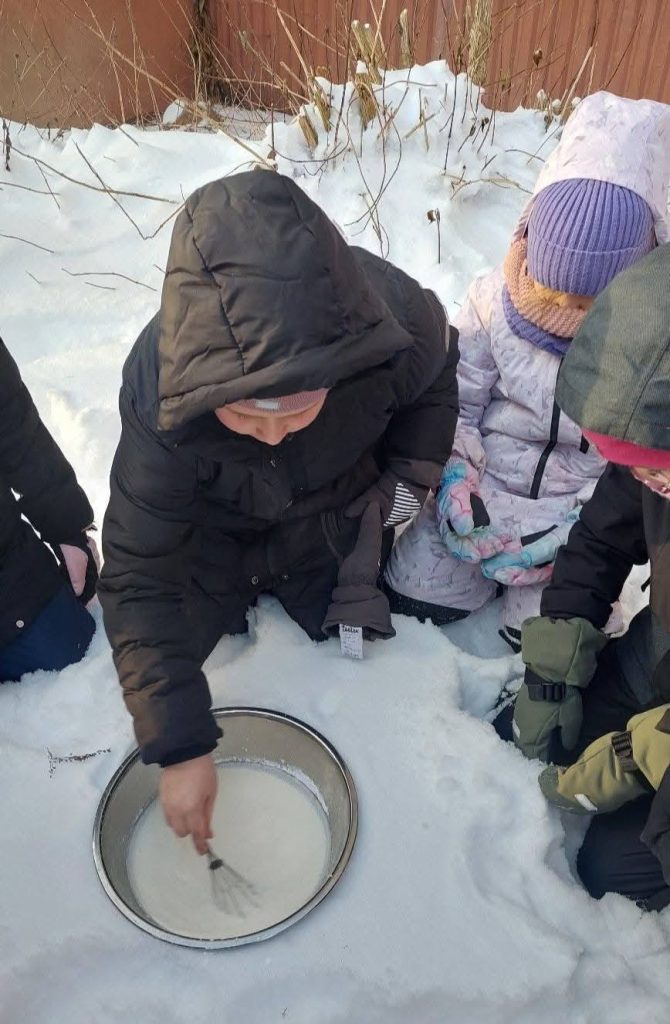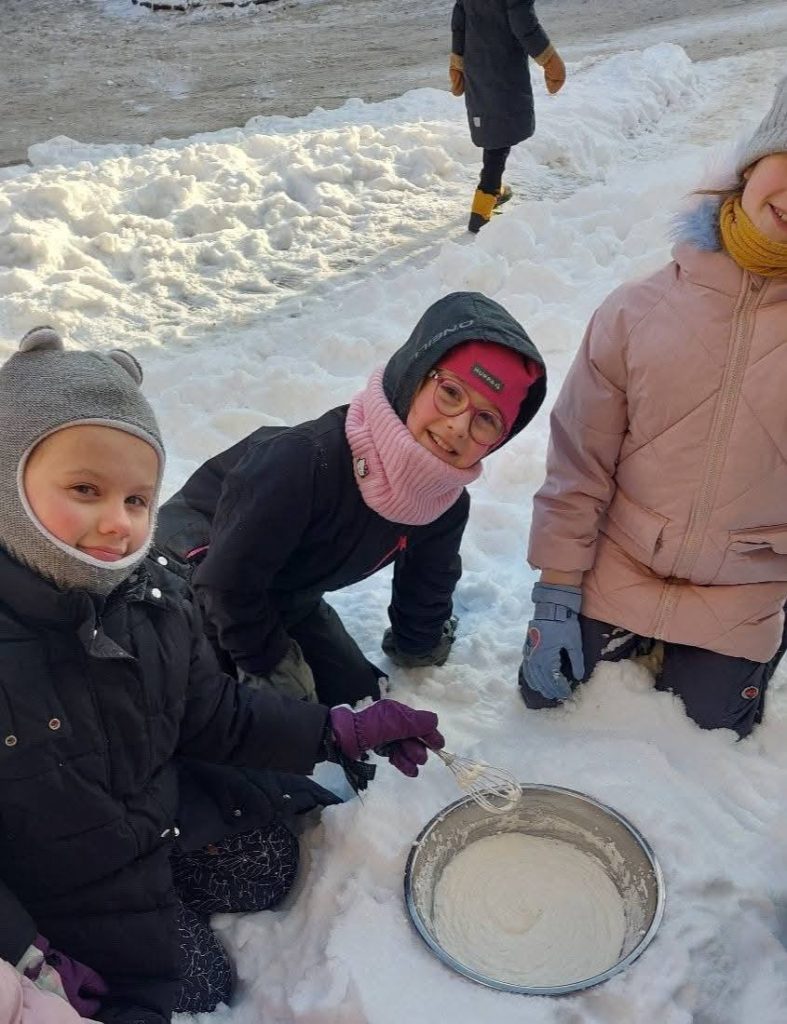 Diskutavo apie žiemos džiaugsmus ir pavojus, kūrė, statė, tyrinėjo. Sausio 16 d. projekto pabaigą vainikavo ledų gamyba. Ledus gaminome patys lauke, naudodami grietinėlę, pieną ir cukraus pudrą.