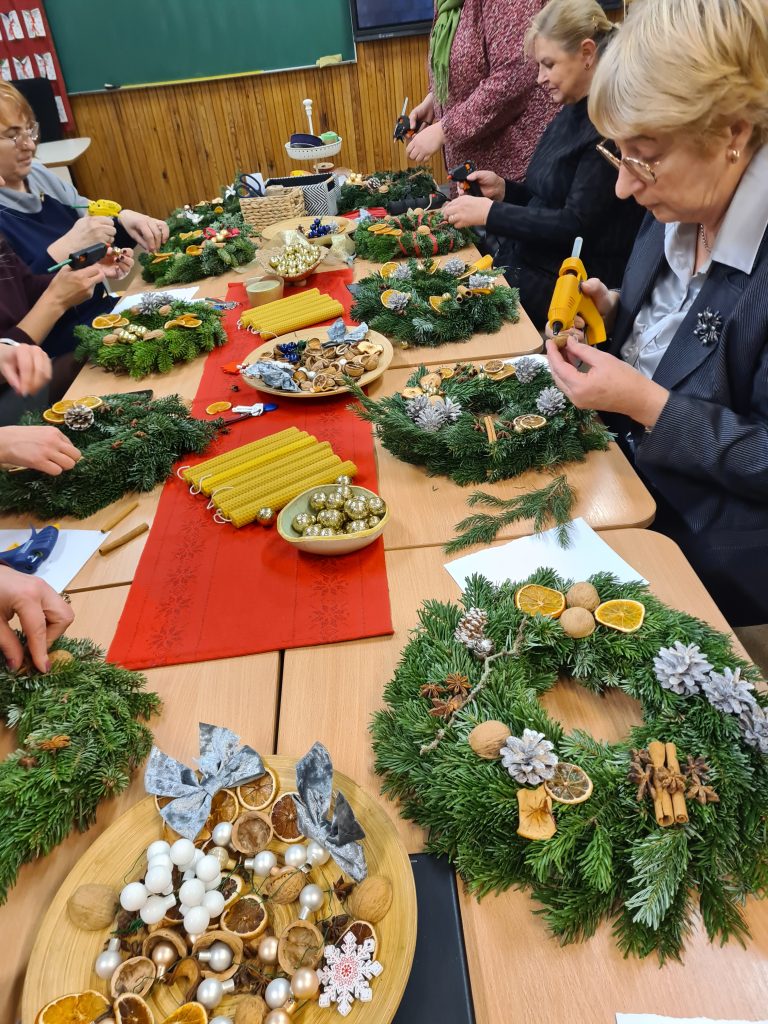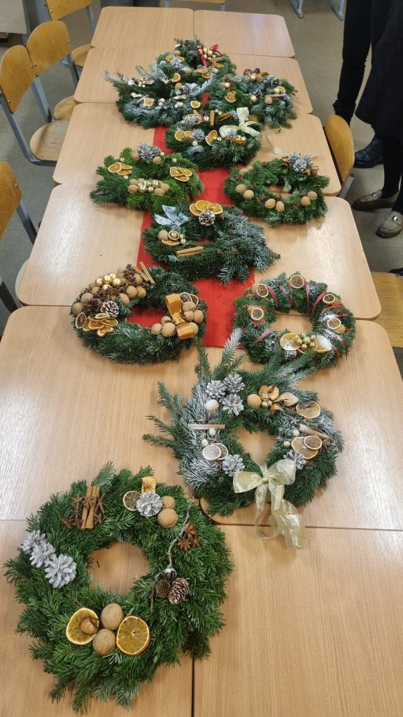 Kvepėjo eglės šakos, žvakės, vaišės ir bendrystė. Kiekvienos vainikas – savitas, kūrybingas ir pilnas šilumos.