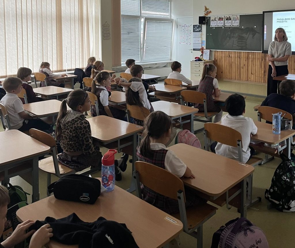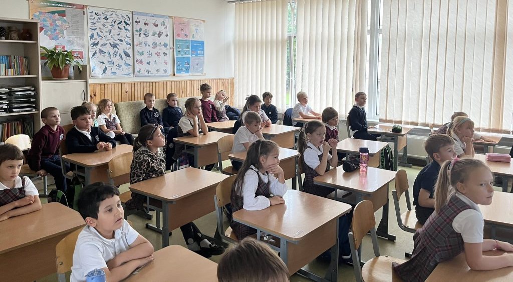 2025-09-19 pirmų klasių mokiniams mokyklos socialinė pedagogė Daiva pristatė jau ne vienerius metus vykdomą budėjimo akciją „Šypsenėlė”. Mokyklos mažiausieji prisiminė saugaus bei mandagaus elgesio mokykloje taisykles, susipažino su akcijos eiga. Pažadėjo rinkti šypsenėles!