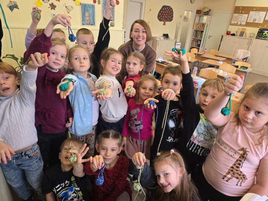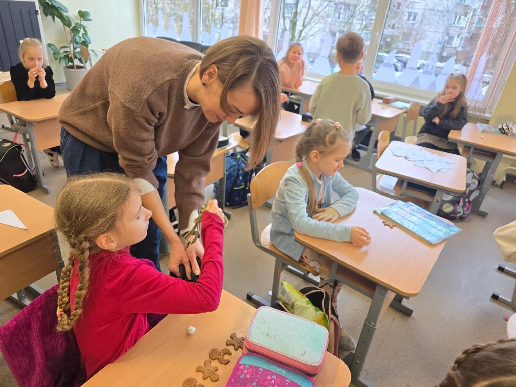 Lapkričio 28 d. 1c klasėje lankėsi Maksimo mama, kuri pravedė kūrybinę edukaciją ir išmokė mokinius, kaip pasigaminti kalėdinę dovaną – pakabuką iš virvės. Užduotis nebuvo lengva: reikėjo kantrybės, kruopštumo ir atidumo, tačiau mokiniai puikiai susidorojo.