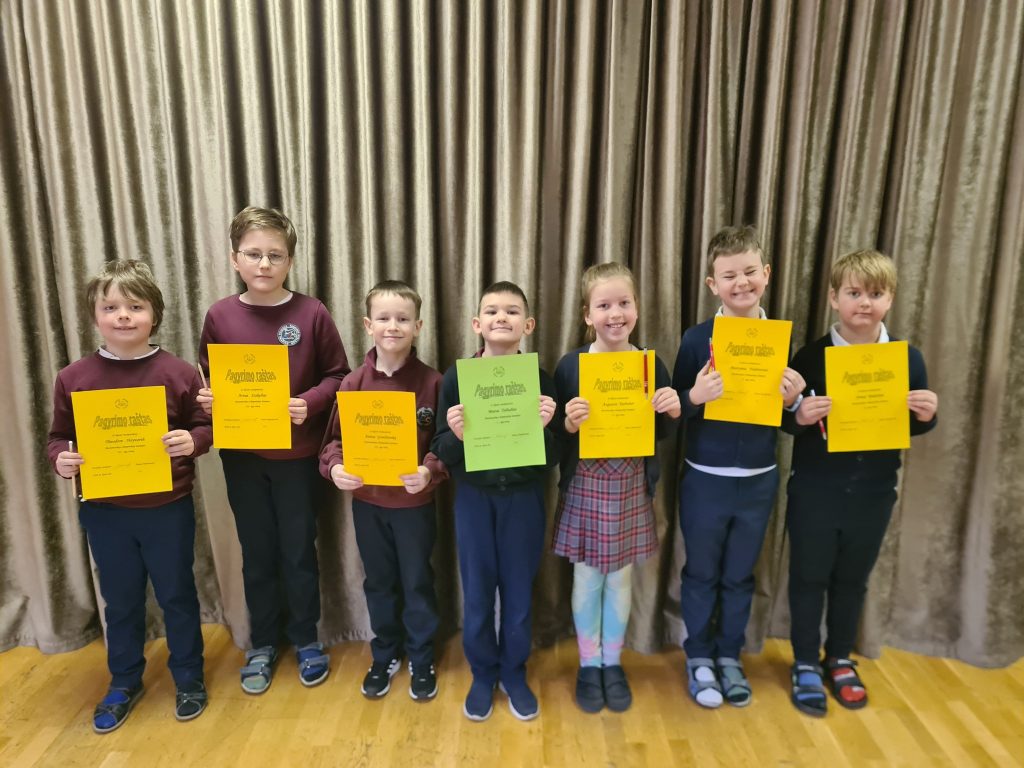I vietos nugalėtojas 2c klasės mokinys Matas Taliušis, kuris kovo 18 d. atstovavo mokyklą Vilniaus miesto 2-4 klasių mokinių matematikos olimpiadoje.